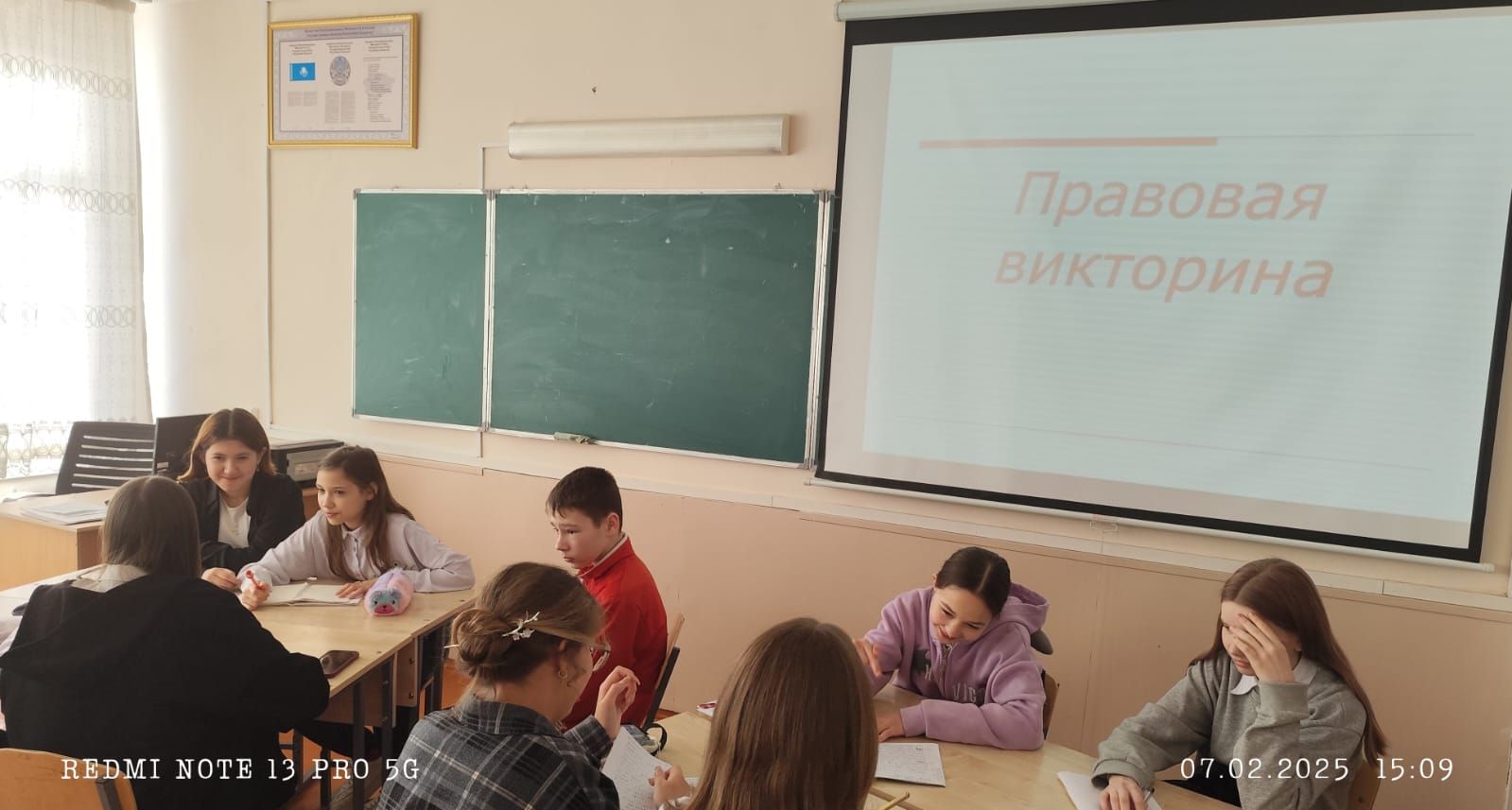 06.02.25 В рамках недели правовой грамотности с учениками 8А класса была проведена викторина на тему " Права и обязанности детей
