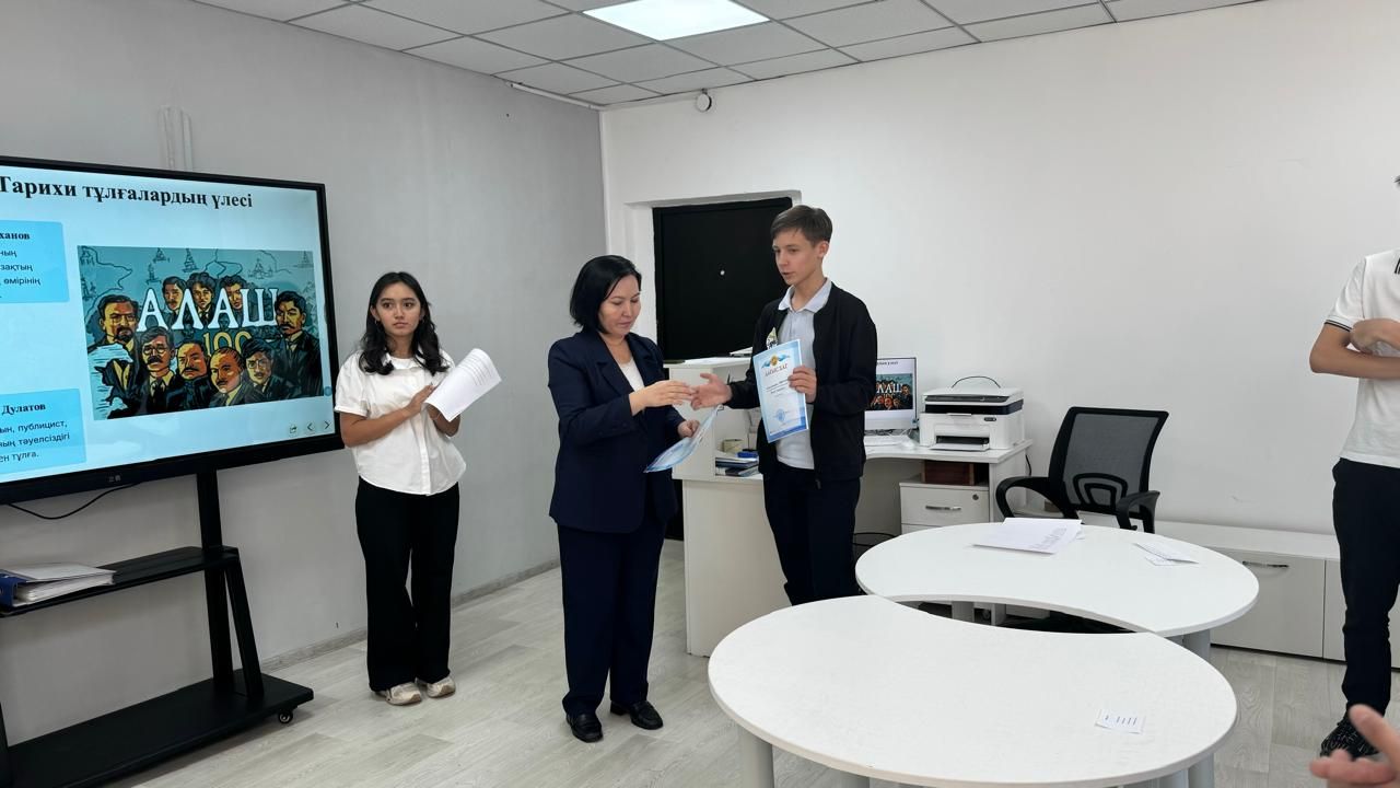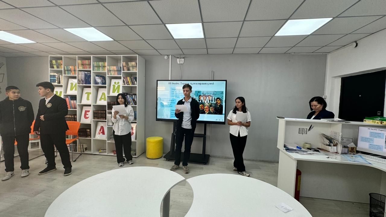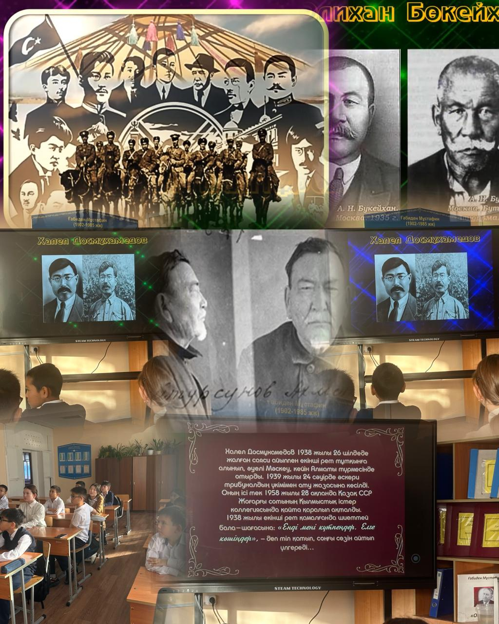 Алаш айлығы аясында “Ғ.Мұстафин атындағы ЖББМ” КММ 6Ә сыныбымен “Ұлт мақтанышы - Алаш арыстары” атты сынып сағаты өткізілді.