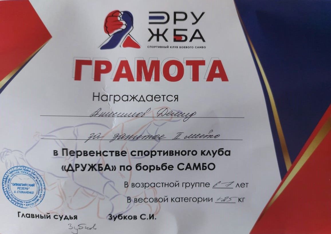 29 сентября прошло Первенство спортивного клуба «Дружба» по борьбе Самбо, где ученик 2 Б класса Анисимов Демид занял 2 место. Молодец ,Демид , так держать!