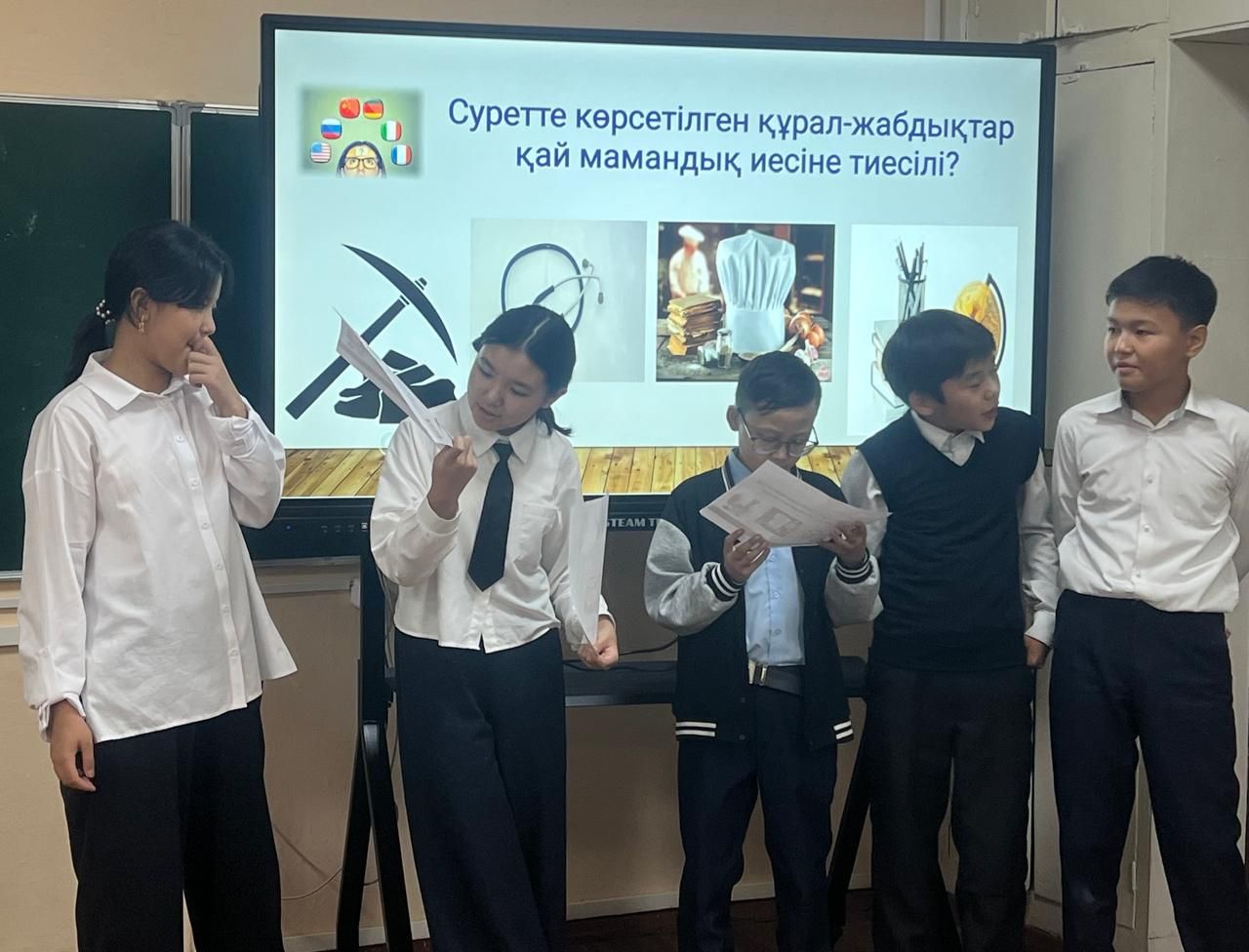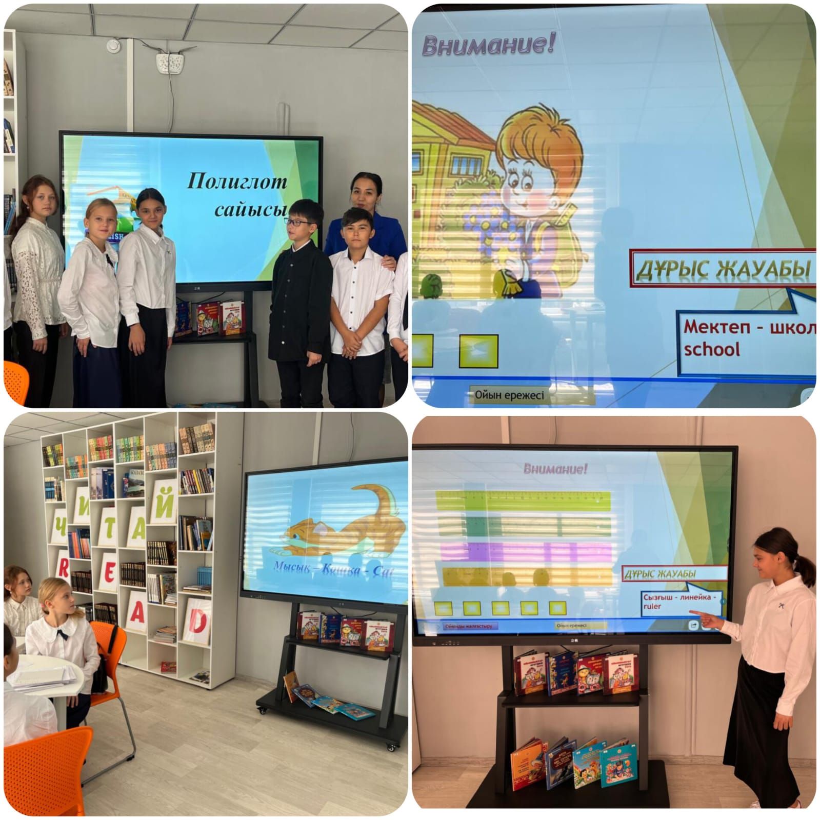 7 “Ә” сыныбында полиглот ойыны өткізілді. Мақсаты оқушылардың қазақ тілі, орыс тілі, ағылшын тілі пәндерінен алған білімдеріне жалпылай шолу жасау, оқушылардың танымдық қабілетін, ой-өрі…