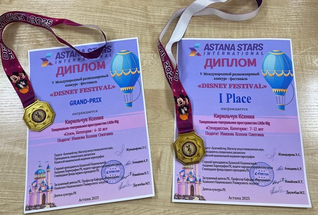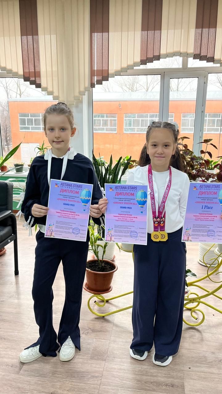 3B сыныбының оқушылары Варвара Парфененко мен Ксения Кирилчук Астанада өткен Disney фестивалінде мектебіміздің намысын қорғап, бірінші орын мен Гран-приді жеңіп алды!