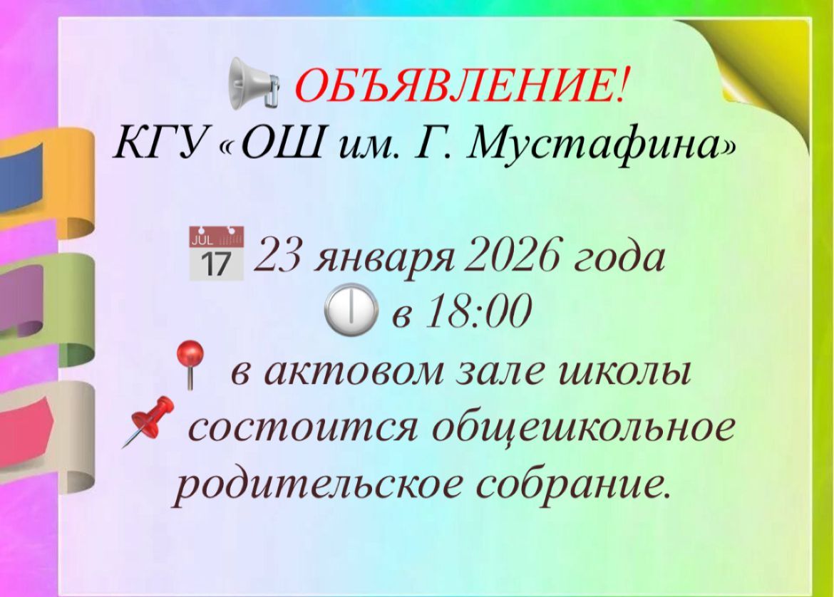 КГУ ОШ им Г.Мустафина обьявляет конкурс в период с 19.01.2026г. по 03.02.2026г.