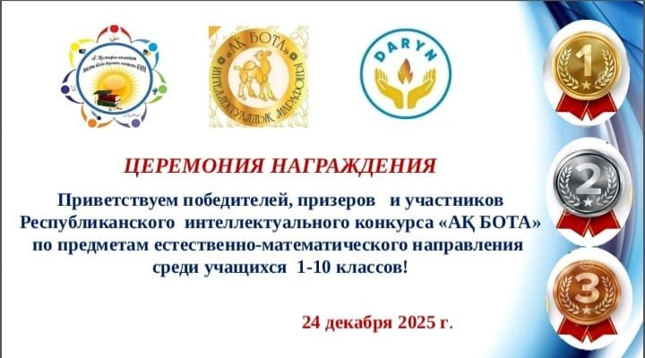 ЦЕРЕМОНИЯ НАГРАЖДЕНИЯ ПОБЕДИТЕЛЕЙ, ПРИЗЕРОВ И УЧАСТНИКОВ РЕСПУБЛИКАНСКОЙ ОЛИМПИАДЫ "АҚ БОТА" ПО ПРЕДМЕТАМ ЕСТЕСТВЕННО-МАТЕМАТИЧЕСКОГО НАПРАВЛЕНИЯ СРЕДИ УЧАЩИХСЯ 1-10 КЛАССОВ