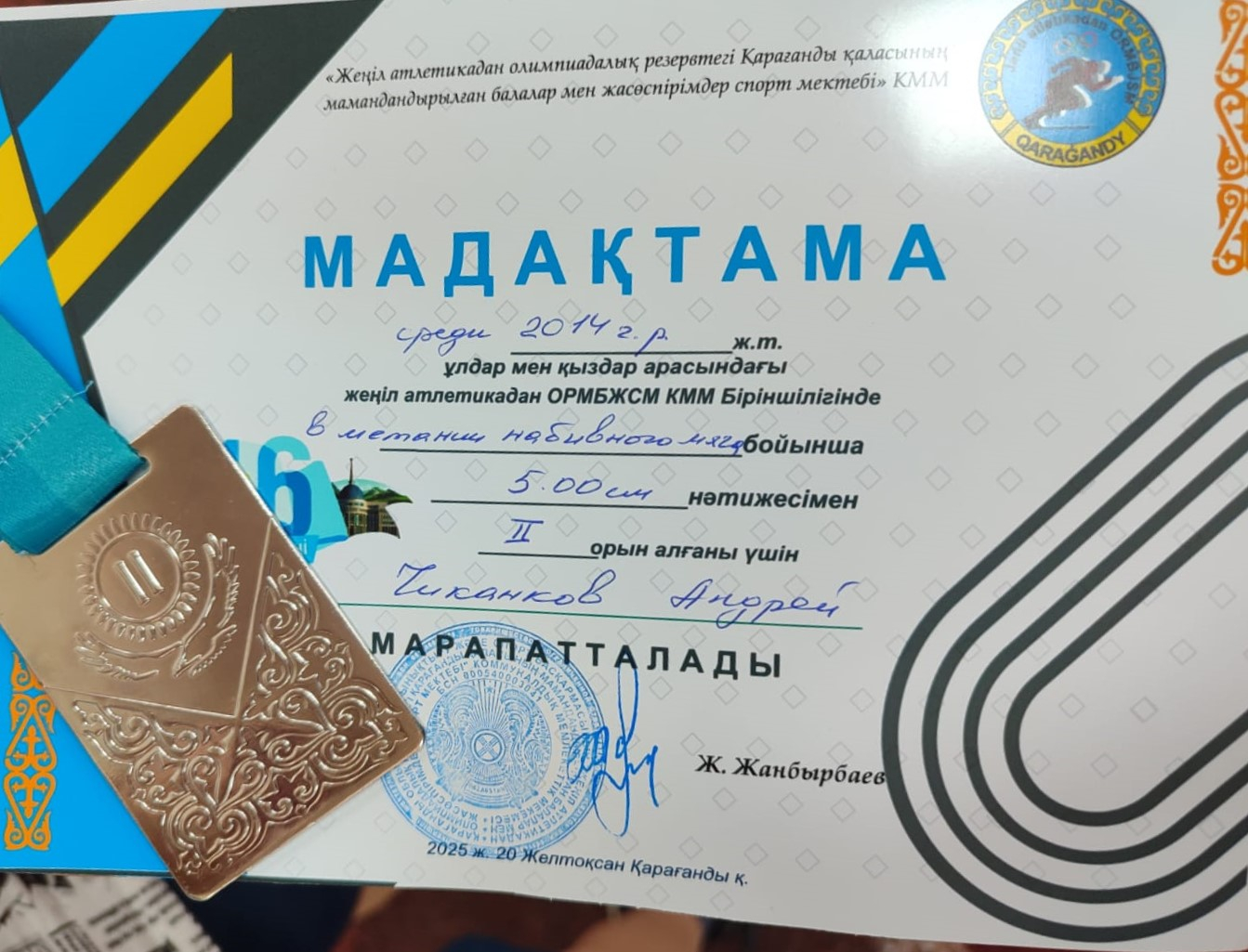 20 декабря в манеже  прошло первенство СДЮСШОР по лёгкой атлетике г. Караганды среди юношей 2013-2016 г. р. , посвященного Дню независимости РК . Ученик 6 А класса Чиканков Андрей ОШ им. Г. Мус…