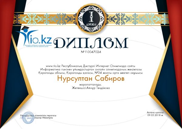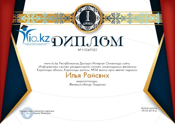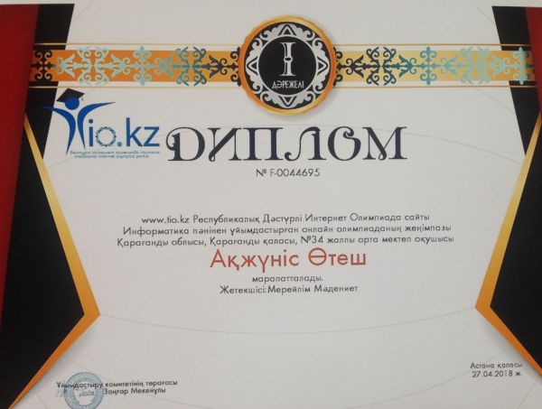 Республикалық Дәстүрлі Интернет Олимпиадасында І орынға ие болған оқушыларымызды құттықтаймыз!!! Жетекшісі: Теңдікова Айнур Бегзатовна