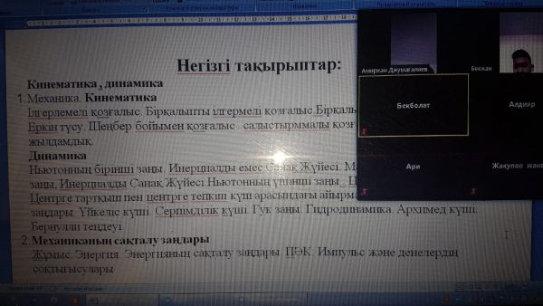Физика пәнінен 9 А сыныбымен ОЖСБ-ға дайындық ZOOM платформасында онлайн өткізілді.