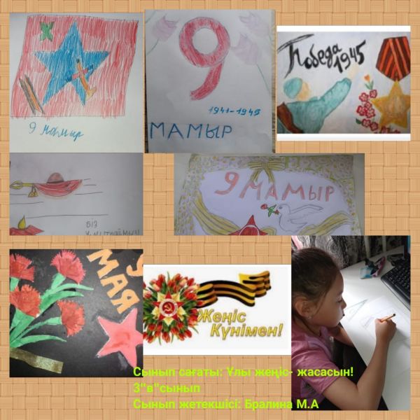 3-мамыр күні 3"В"сыныбында "Ұлы жеңіс- жасасын! атты сынып сағаты өтті. Мақсаты:Ұлы Отан туралы мағұлмат беру.Отан үшін жан қиған аталар мен апалардың соғыстан оралған қазіргі кезде а…