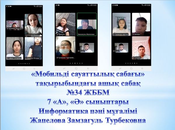 "Цифрлық әлем" ақпараттық сауаттылық апталағы аясында 3-ақпан күні №34 ЖББМ-нің 7 "А", "Ә" сыныптарында информатика пәні мұғалімі Жапелова Замзагуль Турбековна "Мо…