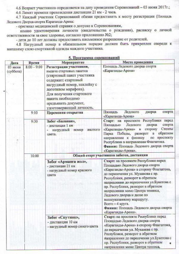 ПОЛОЖЕНИЕ О ПРОВЕДЕНИИ КАРАГАНДИНСКОГО МАРАФОНА "АРМАНҒА ЖОЛ"