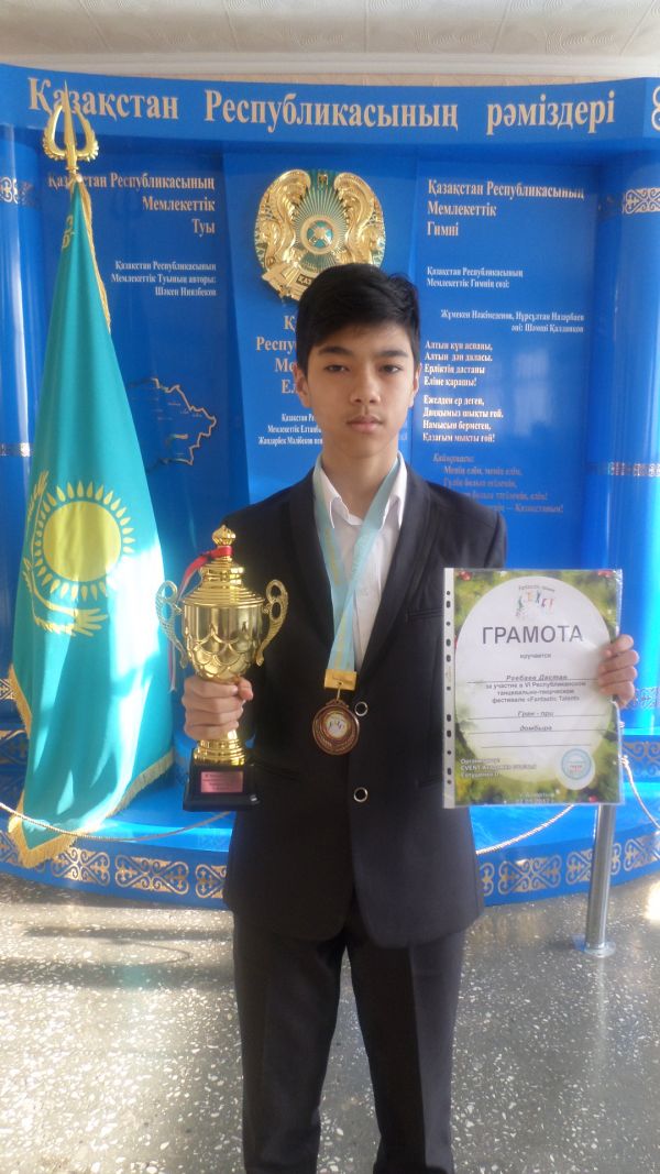 Учащийся 7ә класса СОШ №34 Ргебаев Дастан принимал участие в VI Республиканском танцевально-творческом фестивале "Fantastic Talent", который проводился в Алматы и стал обладателем Гран-При…