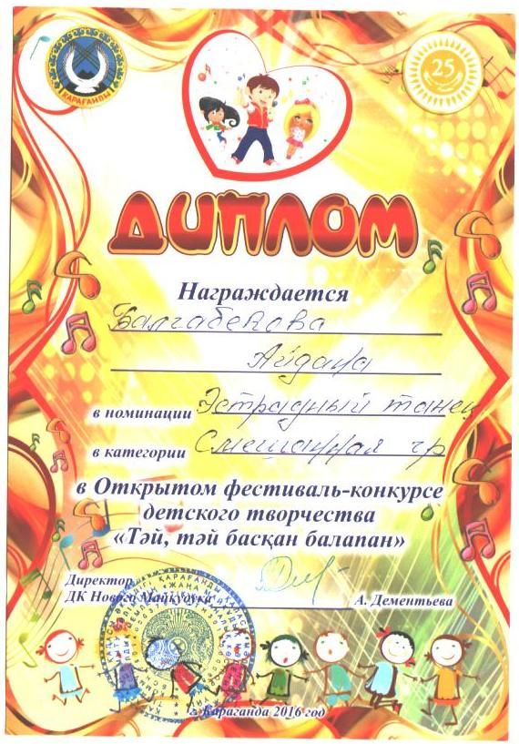 «Тәй, тәй басқан балапан» и награждены дипломами. Поздравляем!!!