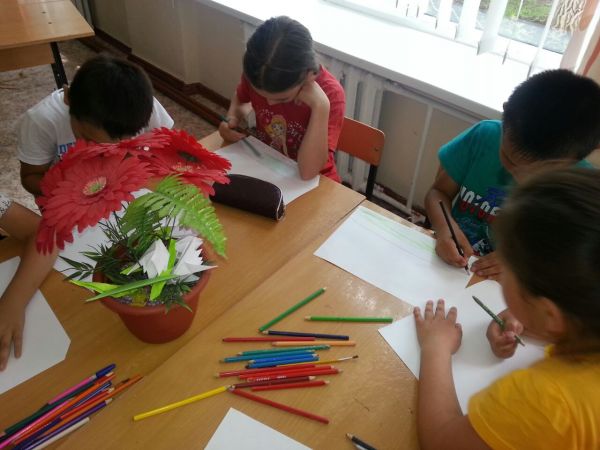 Жаттығу жұмысын жасап бойымыз сергіп қалды."Ару қала-Астана"атты сынып сағаты өтіп,оқушылар сурет салды.