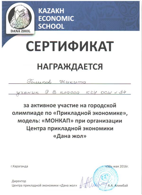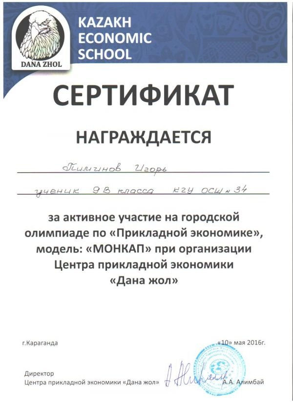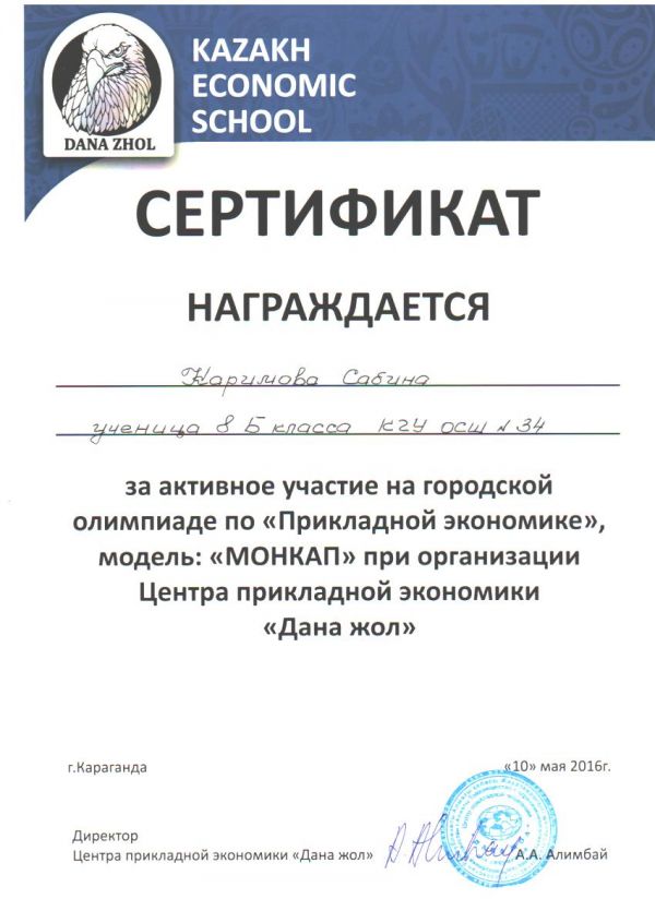 Мамыр айының 5-10 аралығында «ДАНА ЖОЛ» қолданбалы экономика орталығының ұйымдастырылуымен өткен мектеп оқушылары арасында қолданбалы экономиканың «МОНКАП» моделі бойын…