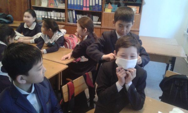 2 наурыз "Азаматтық қорғаныс күніне" орай, 5"ә"сыныбымен "Тыныс алу жолдарын қорғаудағы қарапайым заттар (респиратор, мақтадан жасалған байлам)" тақырыбында…