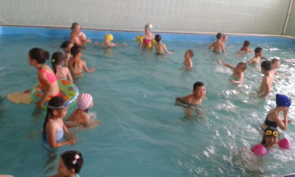 Каждый день в лагере начинается с зарядки. Сегодня, 03.07.15 после завтрака мы проводили спортивные мероприятия: игры, "Веселые старты", затем все дружно посетили бассейн.