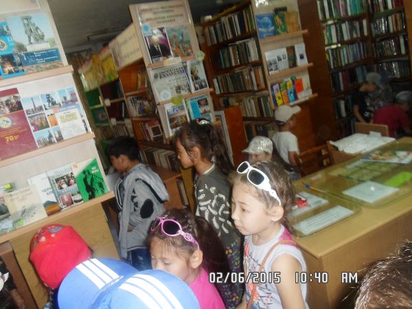 02.06.15 күні «Достық» лагерінің демалушылары 14 шағын аудан кітапханасына саяхат жасады.Кітапхана қызметкерлерінің ұйымдастыруымен түрлі ойындар ойнатылып, белсене қатысқан оқушыларға с…