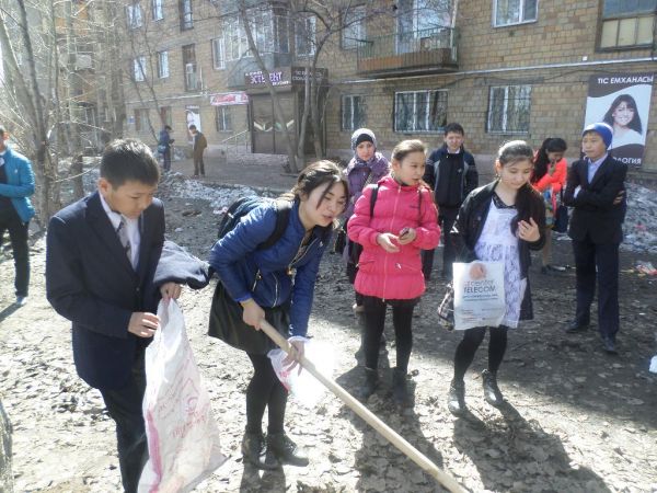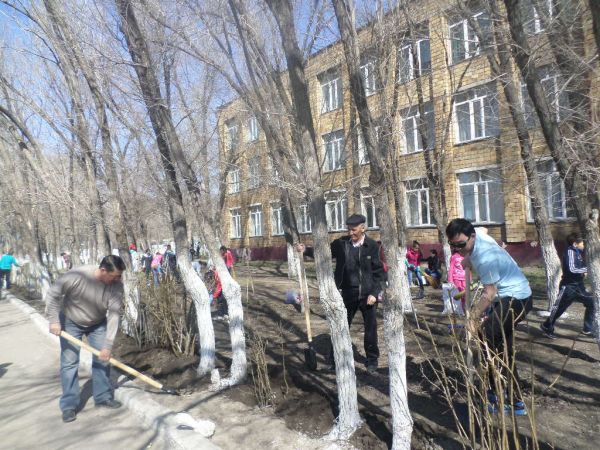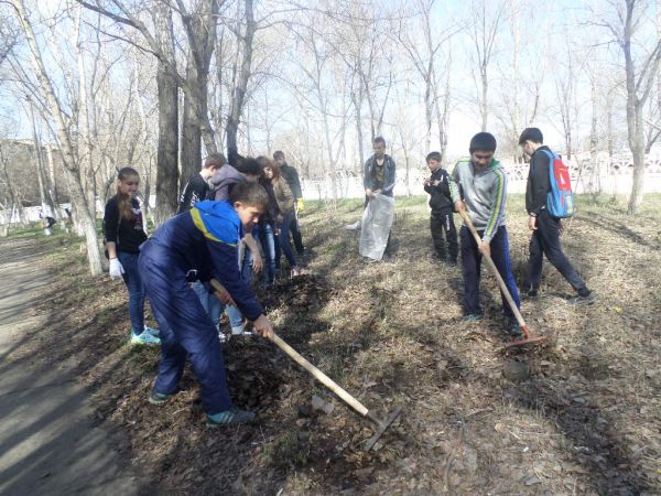 Учащиеся ОСШ №34 приняли участие в общеобластном субботнике, убирали территорию школы и закрепленные участки.
