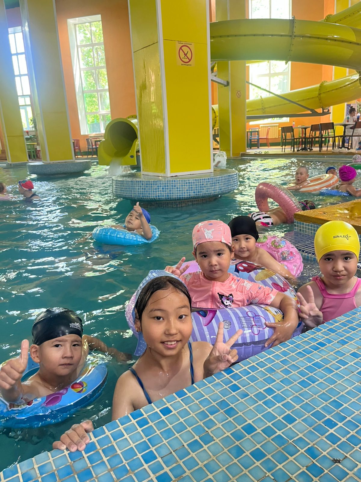 19.06.2025ж. «Жақып Ақбаев атындағы ЖББМ» «Балдәурен» мектепішілік жазғы сауықтыру лагерінің үшінші күні балалармен "Аквапарк" бассейн ойын-сауық орталығына саяхат…