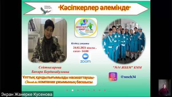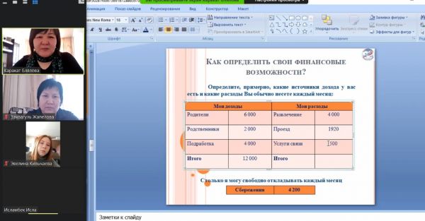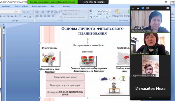 В КГУ ОШ N34 в рамках недели финансовой грамотности в 8 "В","Г " классах провели онлайн классный час на тему "Основы личного финансового планирования"