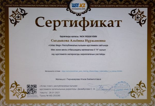 Қарағанды облысы білім беруді дамытудың оқу-әдістемелік орталығының жоспарына сәйкес математика сауаттылығы жоспарына сәйкес 26-ші қаңтар күні №34 ЖББМ КММ 3 сынып оқушыларының арасында…