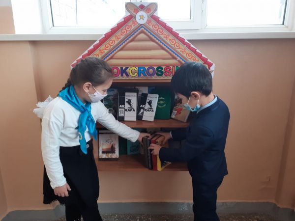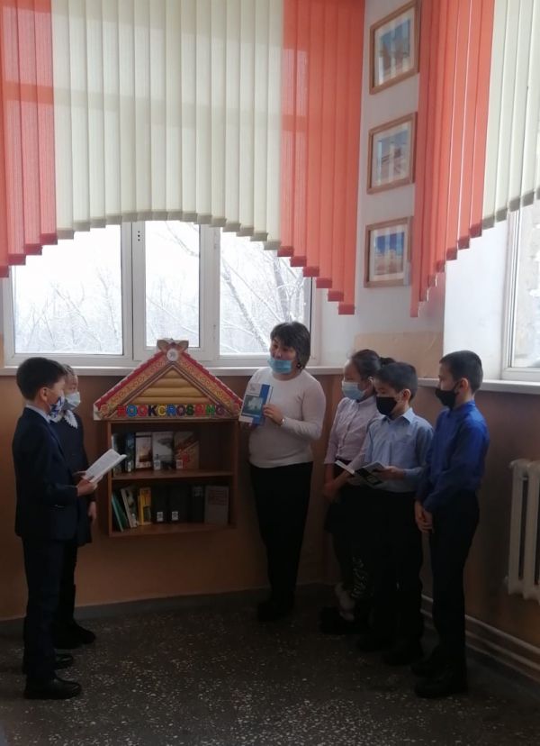 №34 ЖББМ «Оқу сауаттылығы» апталығына байланысты бастауыш сынып оқушылары арнайы әзірленген «Букроссинг» бұрышымен және акция мақсатымен кітапхана меңгерушісі Нафталова Н.К.…