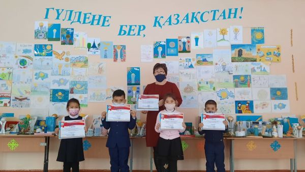 № 34 мектебінің 1Ә сынып оқушылары Тәуелсіздік мерекесіне орай Педагог-Республикалық озат педагогтар порталының ұйымдастыруымен өткен ll Халықаралық "Менің Отаным-Тәуелсіз Қазақстаным" атт…