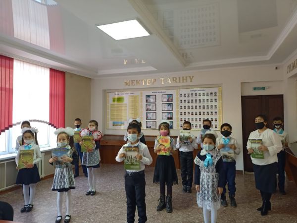 "Бір отбасы-бір" кітап акциясы аясында Абай Құнанбаевтың туғанына 175 жылдығына орай 4-сыныптар арасында өлеңдері мен мысалдарын мәнерлеп оқу сайысында 4"Ә" сынып білім алушысы Т…