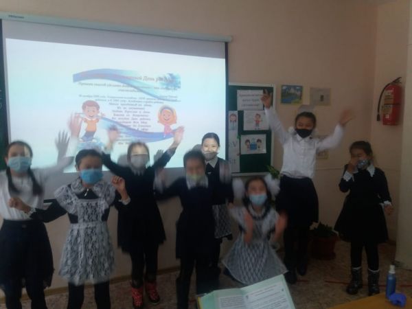 4 "В" сынып оқушылары 20 қараша - Бүкіләлемдік балалар күнінде қуаныштарымен бөлісіп, айналаға шаттық сыйлады.