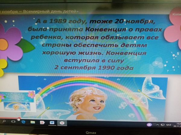 20 ноября в 5 Д классе КГУ СОШ № 34 в честь всемирного дня ребёнка, был проведёно воспитательное мероприятие на тему "Основные права и обязанности ребёнка в Республике Казахстан"