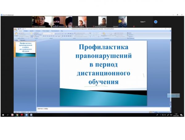 09.09.2020 в СОШ №34 проведена видеоконференция для учащихся 8-х классов с участием  школьного инспектора Джаркеновой Гаухар Курбаналиевной на тему "Профилактика правонарушений в период ди…