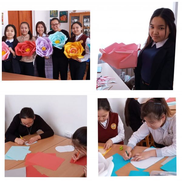 "Гүлдер әлемі" жобасы. 9 А сынып оқушылары. "Көктем мерекесіне тарту" Жоба жетекшілері Фролова Т. И. Абдикаримова Н. К. Прое…