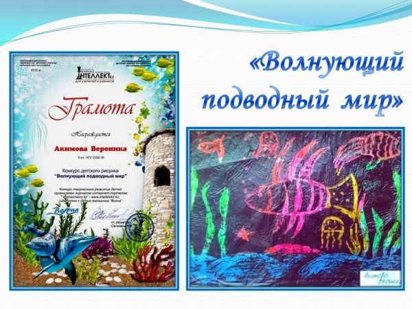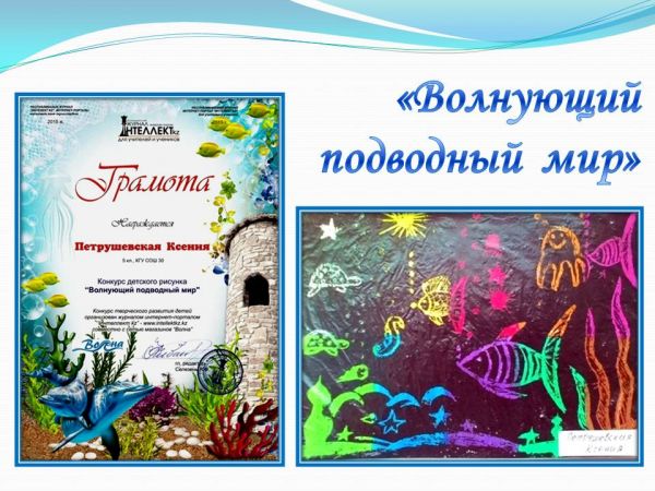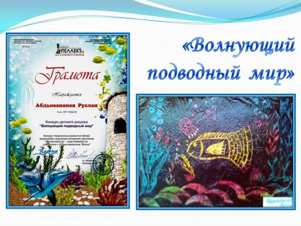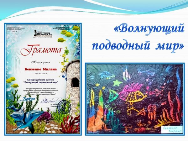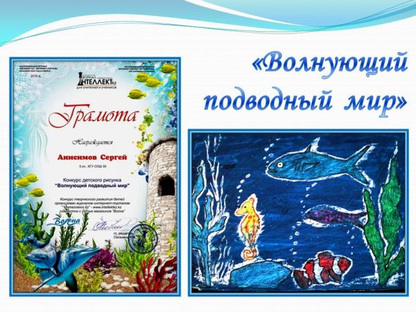 5-6 сынып оқушылары «Интеллект – kz» ғаламтор-порталы Республикалық журналы өткізген "Волнующий подводный мир" балалар сурет байқауына белсене қатысты.