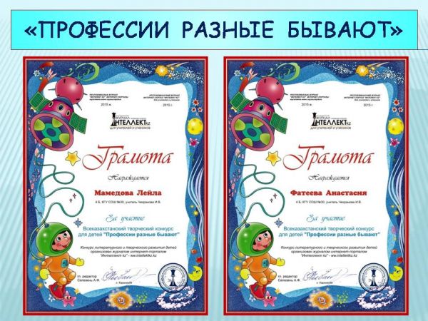 4 «Б» сынып оқушылары ғаламтор-порталы Республикалық журналы өткізген балаларға арналған"«Профессии разные бывают» атты Қазақстандық шығармашылық байқауына белсене…