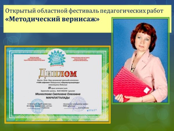 Біздің мұғалімдер "Әдістемелік вернисаж" Ашық облыстық педагогикалық жұмыстар фестиваліне белсене қатысып, жүлделі орындар алды және әртүрлі номинациялар бойынша дипломдарды иеленді. …
