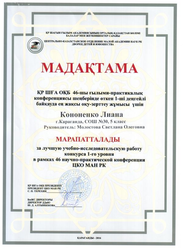 ҚР КҒА 46 ғылыми-практикалық конференцияның қатысушылары Кононенко Лиана мен Апачева Даринаны құттықтаймыз!!!