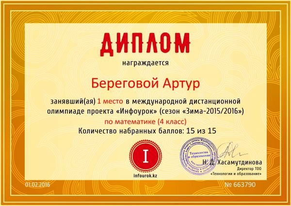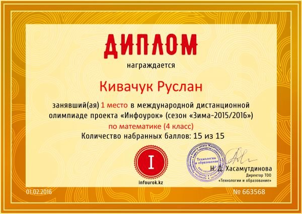 Математика, орыс тілі, логика бойынша халықаралық қашықтық олимпиада жеңімпаздарын құттықтаймыз: Комаров Артём, Хихлову Татьяна, Кенжебаева Диляра, Кивачук Руслан, Российцев Андрей, Каткова Екатерин…