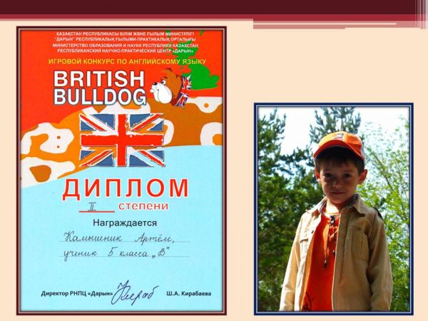 9 сынып оқушысы Қазақстан балалары "Салауатты өмір салтын ұстануда" атты "Фото, бейнефильм, сурет" байқауында 3-орыны үшін дипломмен марапатталды.