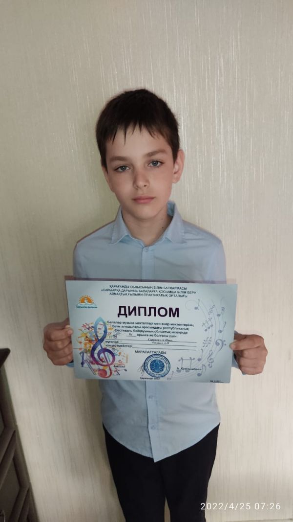 Балалар музыка мектептері мен өнер мектептерінің білім алушылары арасындағы республикалық фестиваль-байқауының облыстық кезеңінде 3 орынға ие болған 4 Б сынып оқушысы Сорокумов Иванды құттықтаймыз!