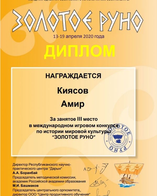 "Золотое руно" тарих бойынша байқауда 2-орын