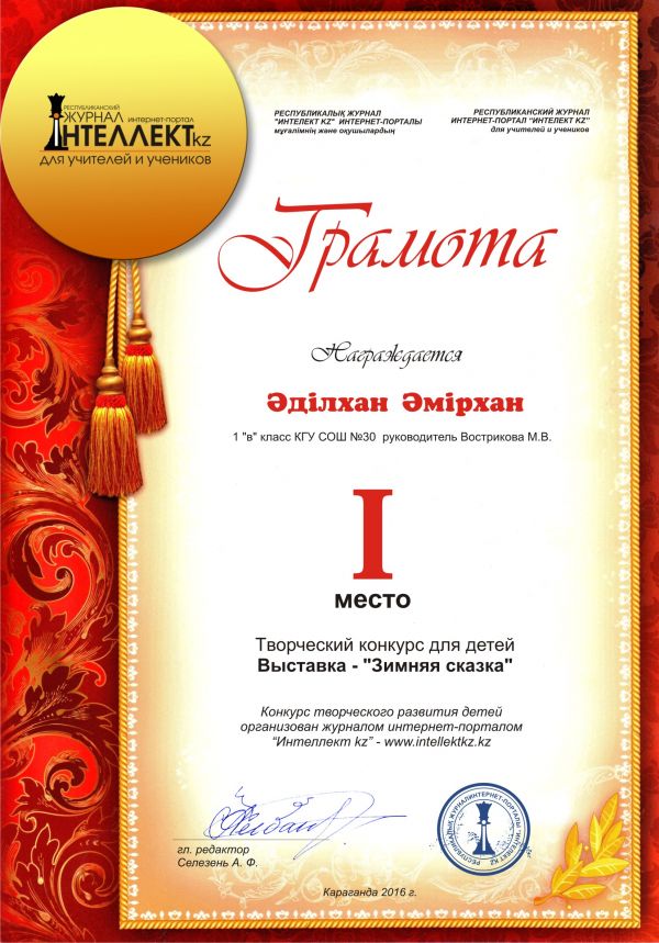 "Интеллект.kz" зияткерлік журналының жеңімпаздарын құттықтаймыз!!!