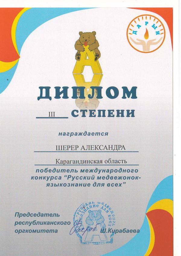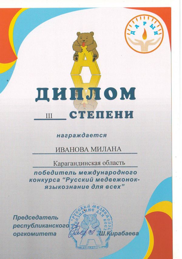 "Русский медвежонок - языкознание для всех" халықаралыө байқауының жеңімпаздарын құттықтаймыз!!!!