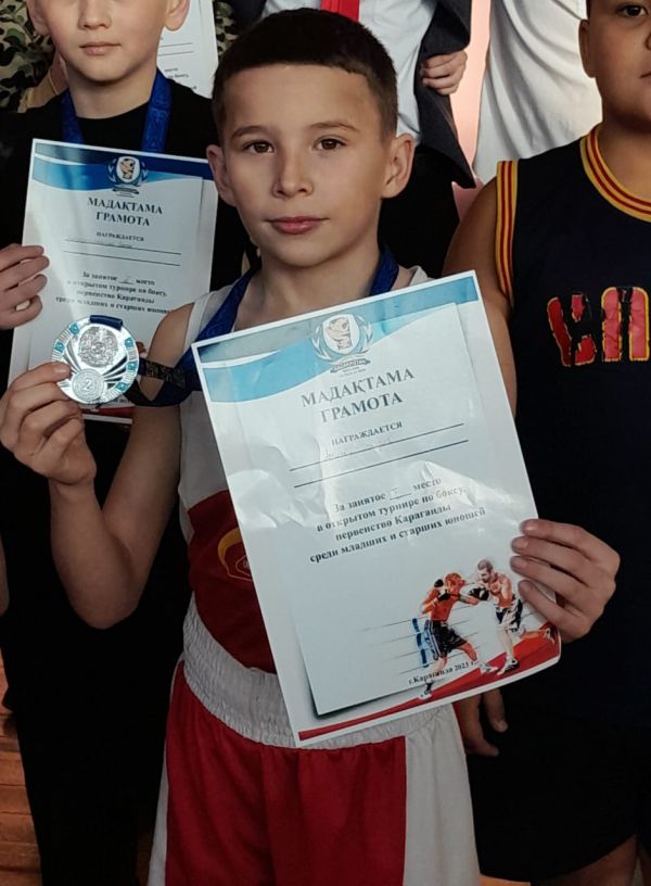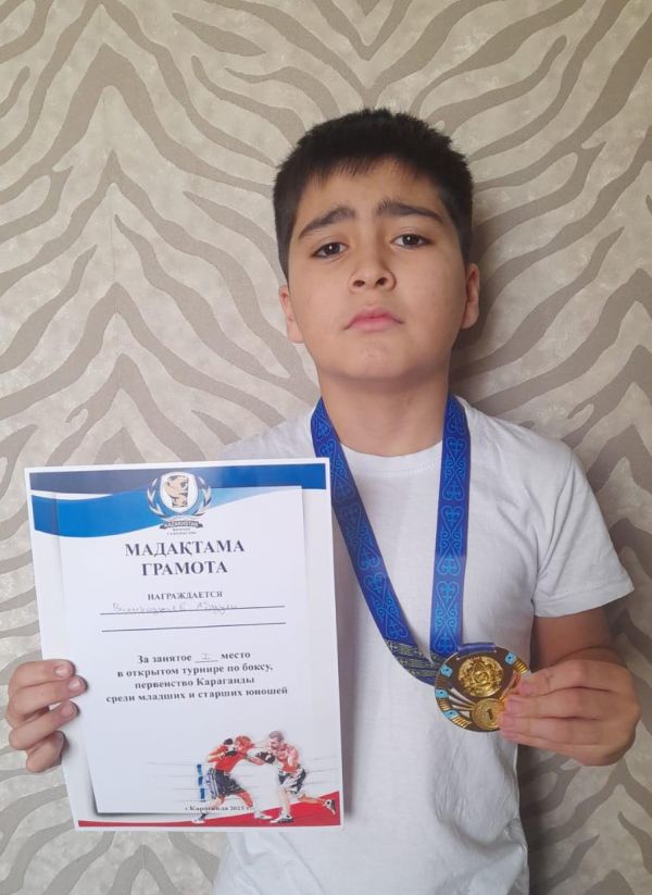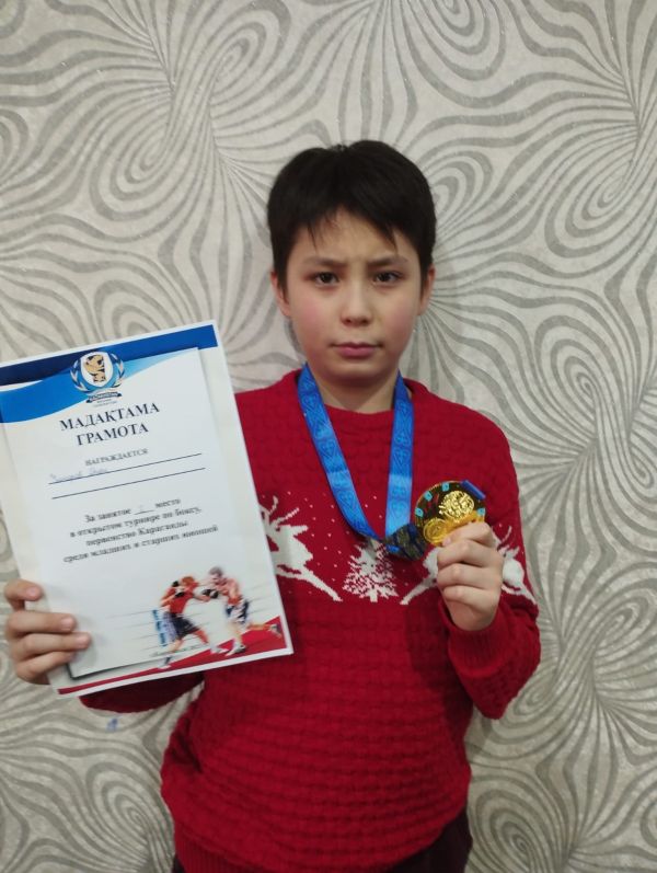 Умиров Диас, соревнования по боксу, занял первое место, ученик 5 " в" класса.