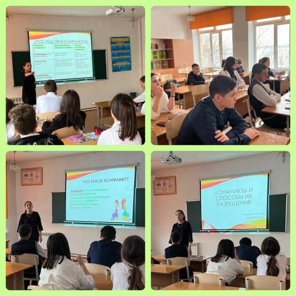 Аутодеструктивті мінез-құлықтың алдын алу аясында 8 «Д» сынып оқушыларымен «Кақтығыстар және оларды шешу жолдары» атты ақпараттық сағат өткізілді.