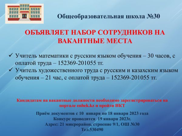 НАБОР СОТРУДНИКОВ НА ВАКАНТНЫЕ МЕСТА