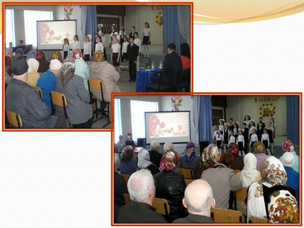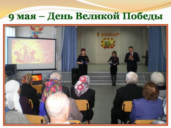30 сәуір 2015 жылы 9-мамыр-Ұлы Жеңіс күні меркесіне арналған іс-шара өтті, оған ОСА мен тыл еңбеккерлері шақырылды. Біздің мектептің бастауыш сынып мұғалімдері мен оқушыларынан музыкалық құттықтаула…