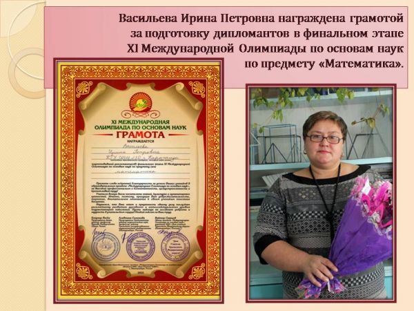 Біздің мектеп оқушылары ғылым негіздері бойынша XІ Халықаралық Олимпиадаға белсене қатысқаны үшін жүлделі орындар иеленгені үшін дипломдармен марапатталды.