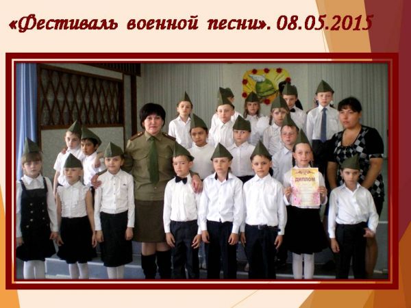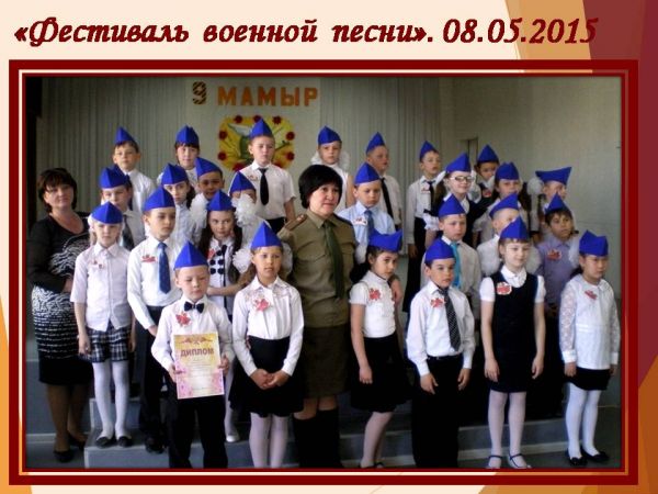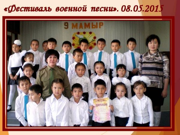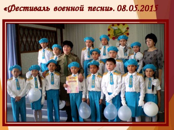 Алғаш рет біздің мектепте бастауыш сынып оқушылары арасында Ұлы Отан соғысының 70 жылдығына арналған "Әскери әндер фестивалі" атты іс-шара өтті. 2 ауысымның оқушылары фестивальге белсене а…