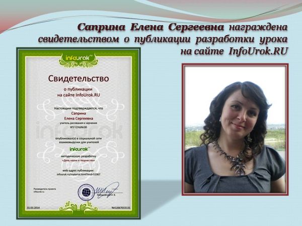 Біздің мектептің ұстаздары InfoUrok.RU.сайтында сабақ әзірлемелерін жариялау бойынша куәлікпен марапатталды.