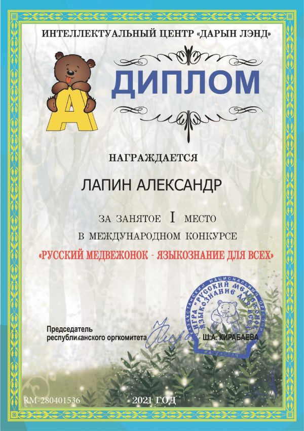 Поздравляем учеников 3Б класса с победой в Международном конкурсе "Русский медвежонок"