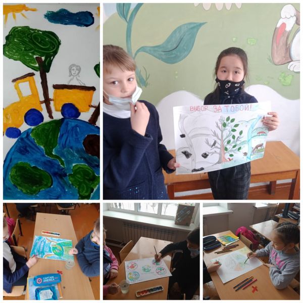В рамках недели по экологии. В 4 "Г" классе прошла выставка рисунков"Защити планету".